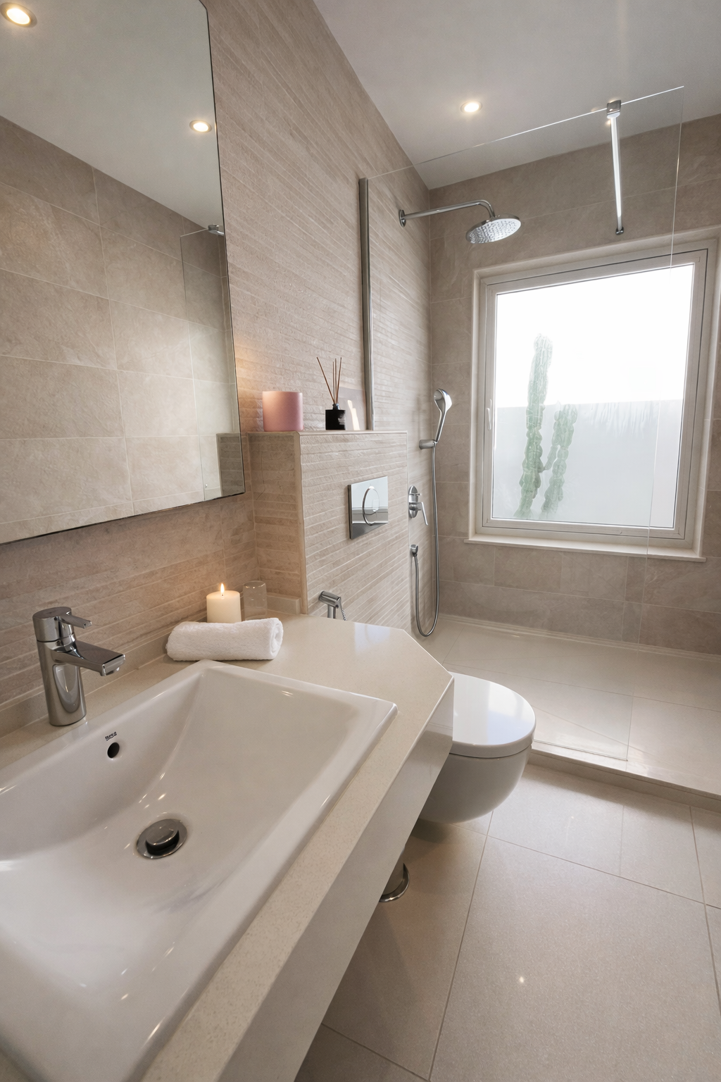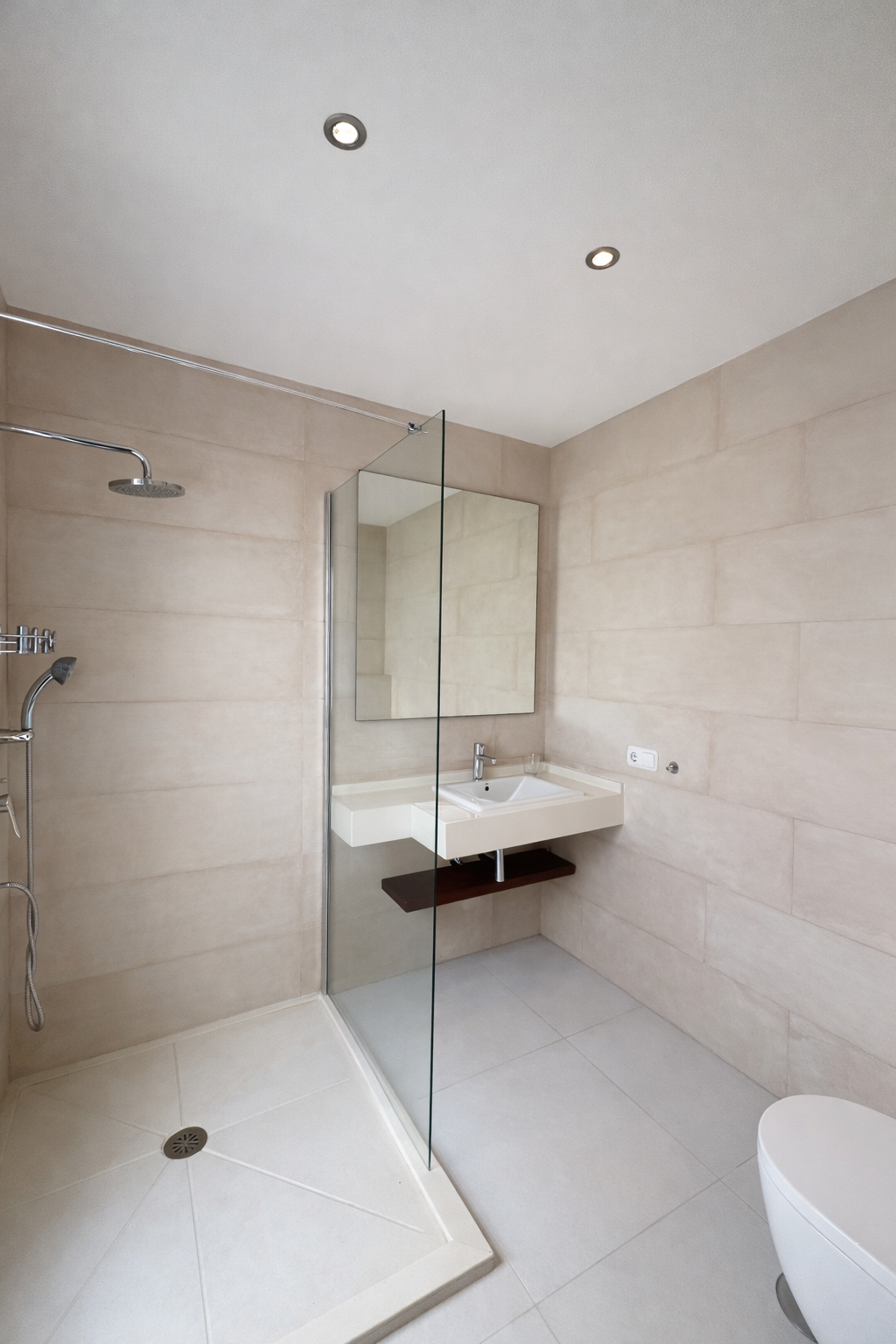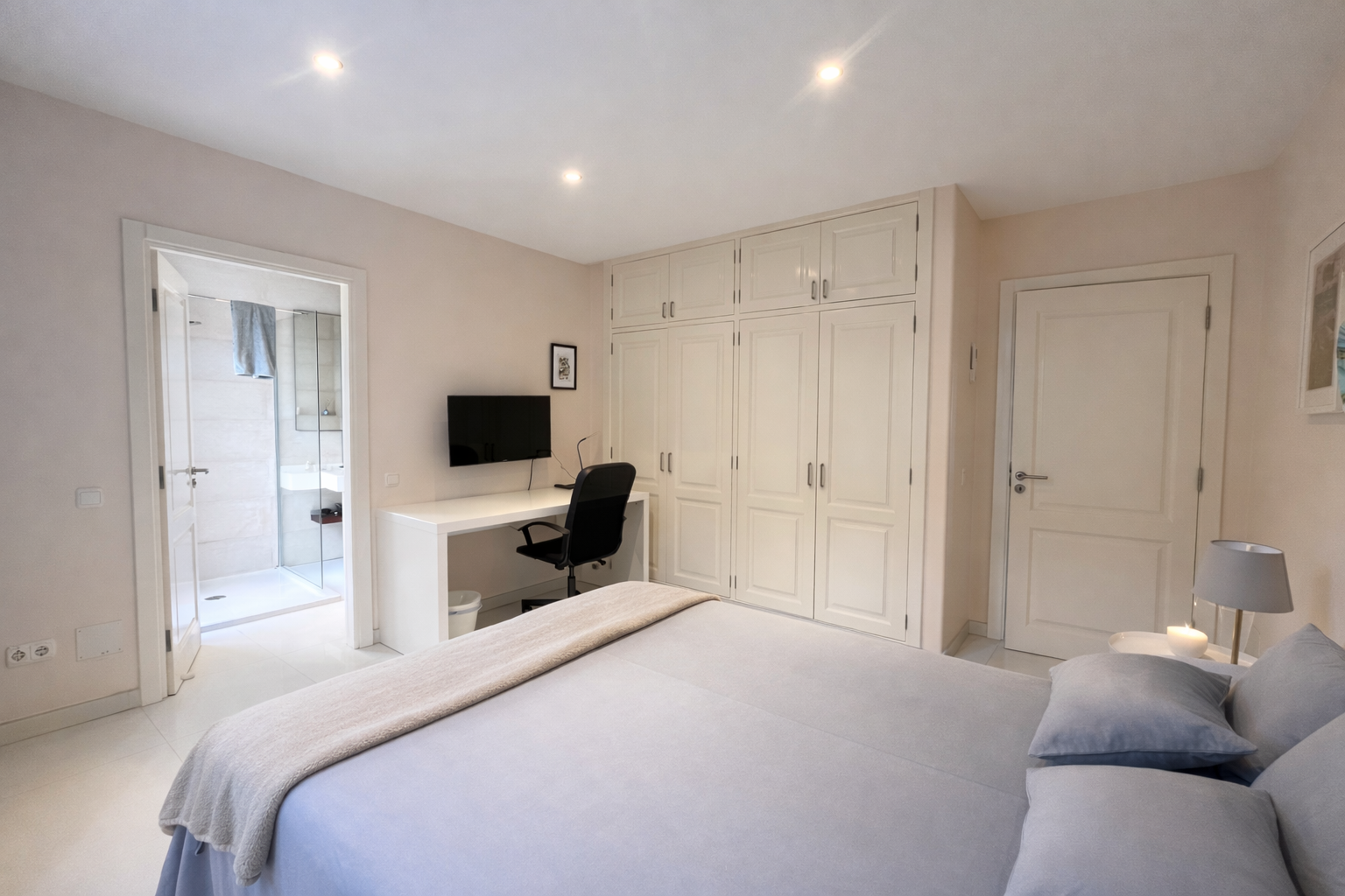 3 bedrooms have a private bathroom for each room, 3 bedrooms have Smart Tv and Air conditioner. The 4 bedroom is the room which overlooks the garden called the “Green bedroom” no Tv just green and art on the wall to recharge from a digital world and the 4th guest bathroom along the corridor.